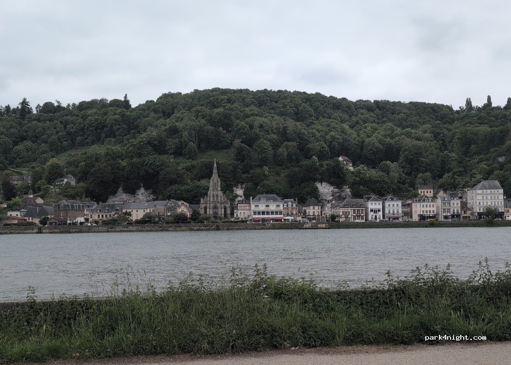 Beaucoup de voiture de stationnées donc pas de place pour se poser :-( Attention, si vous arrivez par La Bouille, le passage du bac est limité à 3,00 m de haut.