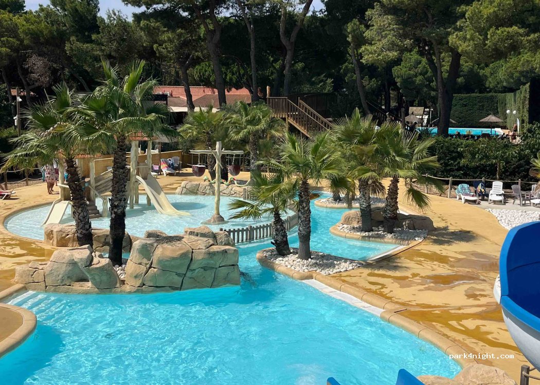 Très agréable camping. Grands emplacements ombragés. Accès piétonnier à la mer (800m) Piscines, parc aquatique, restaurant, boutique bien fournie, animation. Parc avec jeu pour les enfants, terrains de foot, table ping pong. Coin pêche aménagé. Location de vélo. Parcours TT. Sanitaires nickels. Personnel très aimable. Que dire de plus. Si 8 étoiles existaient, je les attribuerai sans problème !