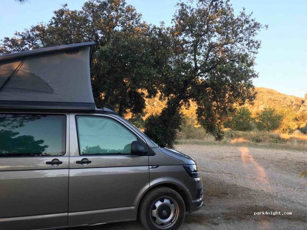 Lieu magnifique avec vue sur les alpilles - assez ventu mais vue dégagée et calme absolu. S’arrêter juste avant la barrière qui délimite la pare naturel - donc pas d’interdiction. Plusieurs emplacements pas toujours bien plats mais avec un van plusieurs possibilités de plat. Quelques randonneurs la matin (4)