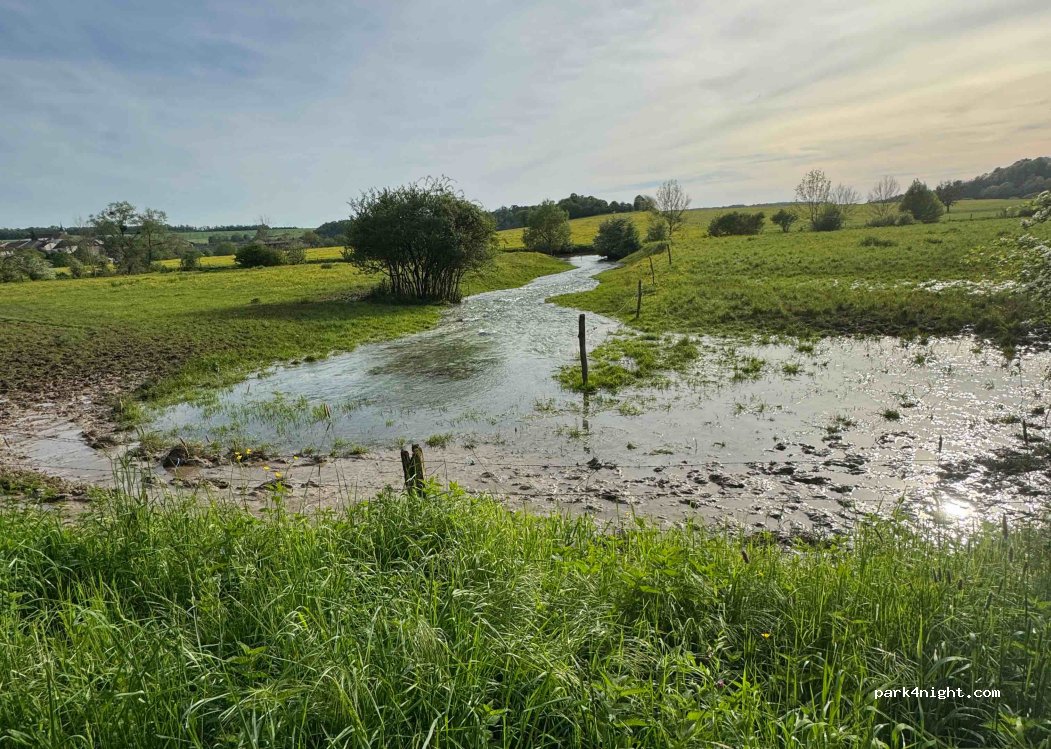 So peaceful and lovely place with nice views over the fields and the little stream. You van take a nice walk to the charming village. There are no shops but a church and a chatau and an old bridge over the river. You van also go for a walk in the ”Woods”. We stayed one night and just fell in love with the place.