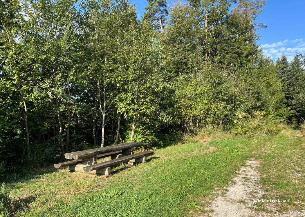 Place en bordure de route, tables de pique-nique à proximité, un peu de passage en particulier le dimanche mais pas trop mal...