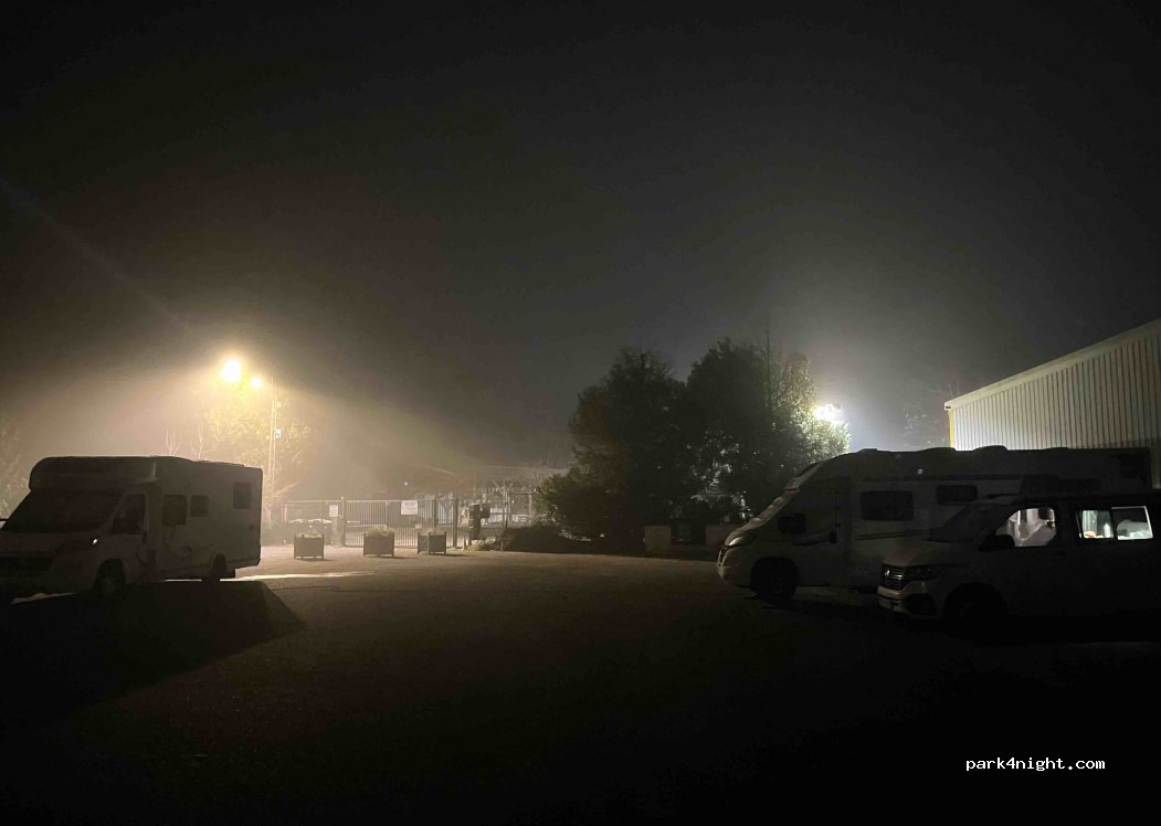 Convenient parking on tarmac. Accessible for large campers as well. When taking the exit from the motorway at exit 31 there is signs for weight limitation at 3,5t, but your clear to proceed.