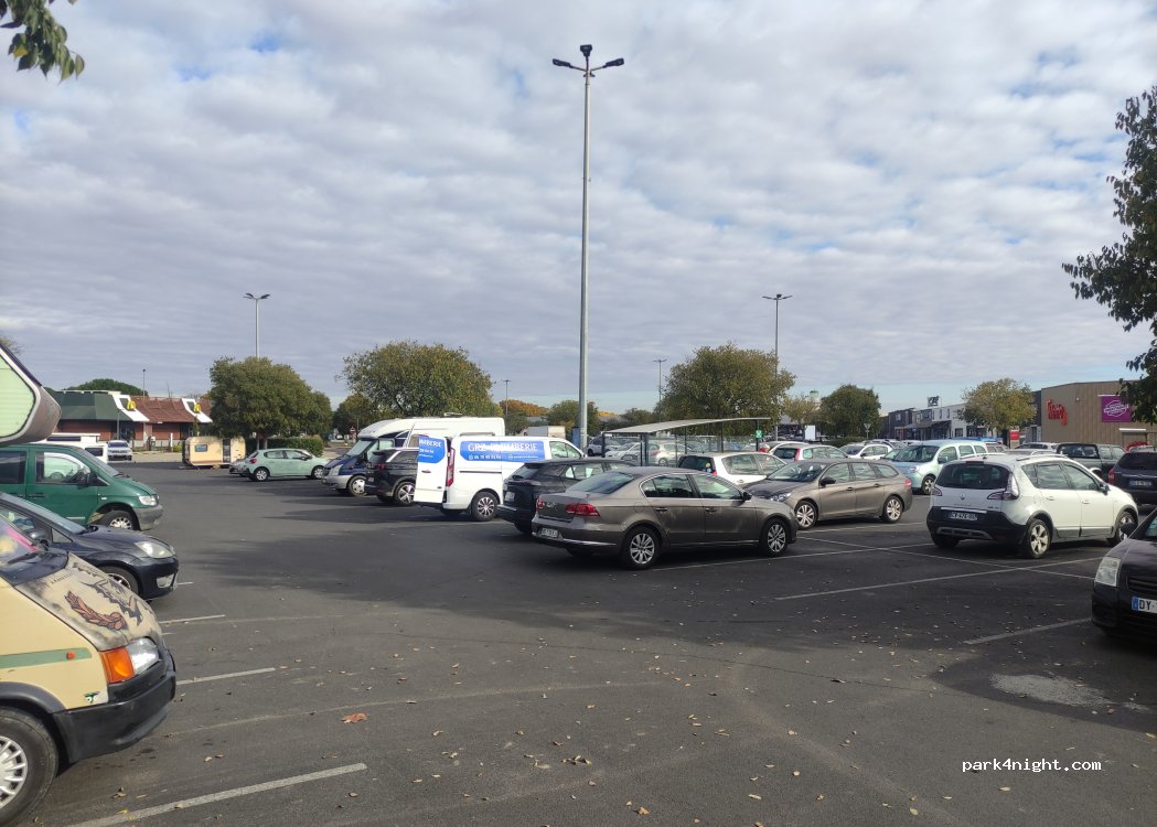 Beaucoup de places sur ce parking de grandes surfaces, mais pas de places dédiées au camping-car. relativement bruyant en cette fin de semaine avec la présence de Mac Do. Peut-être une bonne adresse pour une nuit
