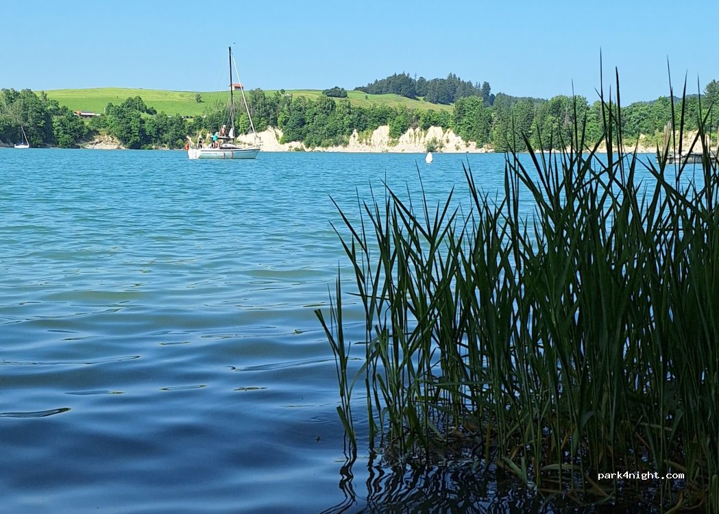 Sehr schöner CP mit Sanitäranlage, die in einem sehr guten Zustand ist. Dieser Teil des Forggensees wird nicht von Dampfern und nur selten von Motorbooten befahren. Man kann ungestört schwimmen.