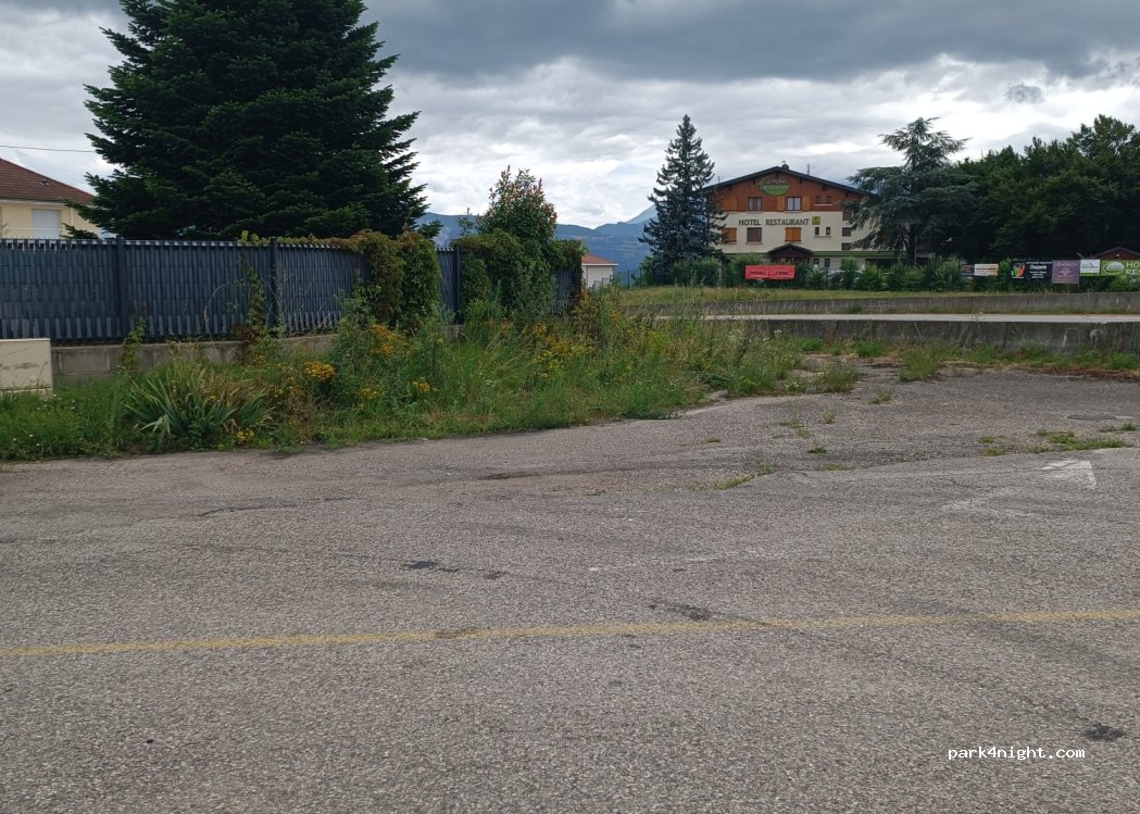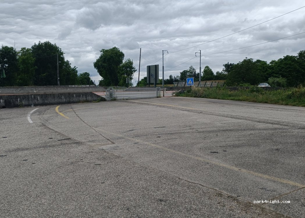 Ancienne route fermée, à côté de la voie ferrée, mais tranquille pour une étape sur la route. Sert de parking pour les cirques de passage