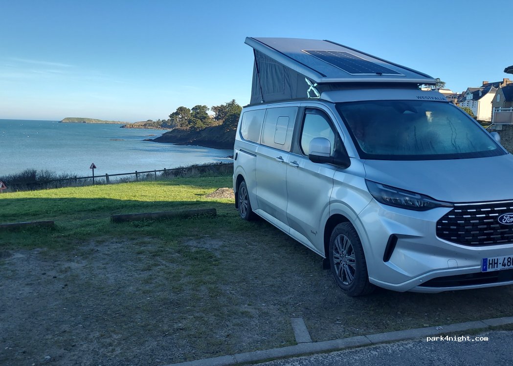 Parking sympa avec vue sur mer, proche sanitaires avec quelques tables de camping pour déjeuner et a proximité de la plage. Ce parking est plus fait aux véhicules assez court type van.