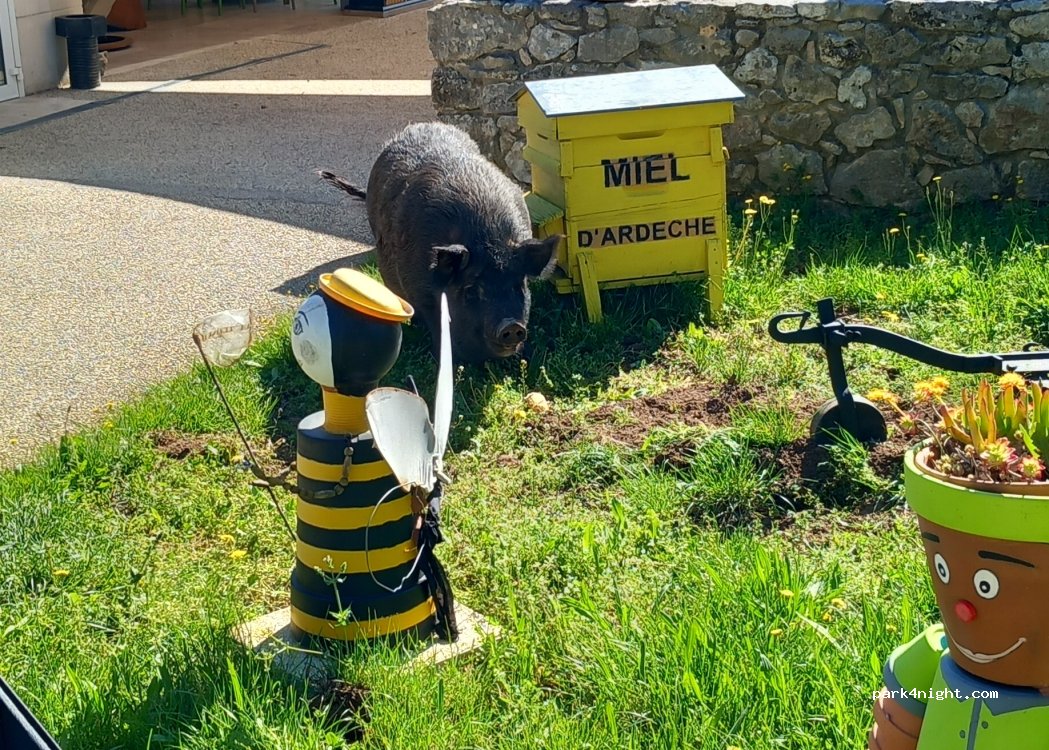 Endroit parfait et calme,nous avons eu la visite de "copain" le cochon en soirée, nous devions rester qu une nuit mais c était tellement agréable que nous sommes restés une nuit de plus. Du coup nous avons été visiter la grotte de la madeleine en vélo (15km aller/retour) parcours facile avec assistance électrique sinon c'est pour personne un peu sportive car ça grimpe !