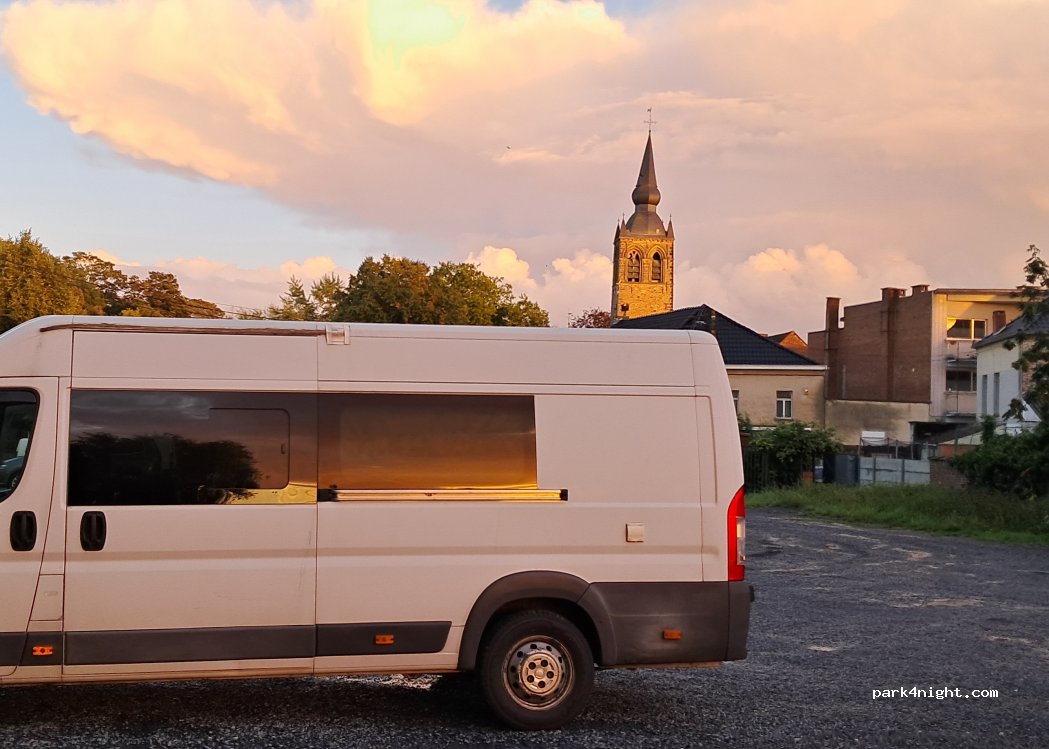 Grote parking zonder voorzieningen in het centrum van een gezellig dorpje. Naast de kerk en een vrij drukke straat, dus een beetje lawaaihinder 's nachts.