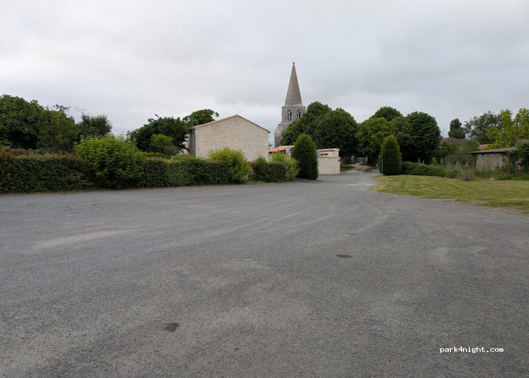 Estacionamiento de la escuela. No muy lejos de la RN 10, ideal para una escala nocturna, noche tranquila. Ningún comercio excepto en Roullet, la ciudad vecina