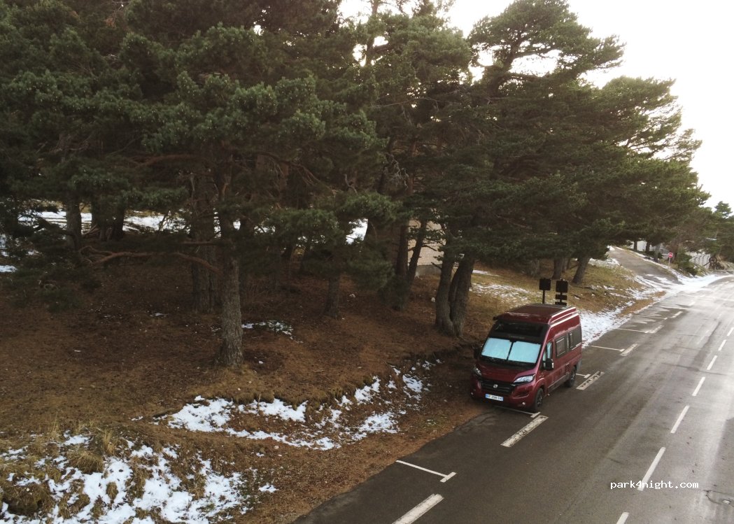 Parking le long de la route menant au camping. Belle vue sur le mont Ventoux. Aucun service et pas d'information sur la réglementation de stationnement dans la station.