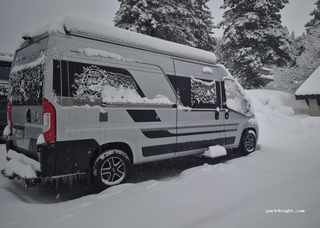 nous y avons passé une semaine entière après Noël. petite aire de camping car avec tout les services. toilette , douche , sanitaire , vidange et branchement. proche remonté mécanique écrins et centre commercial (10 minutes à pieds). parfait pour un vrai caravaneige. les guinoliau