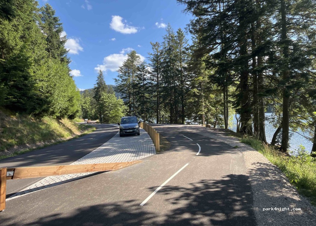 Très petit parking interdit au camper de 22h à 9h accès facile au lac