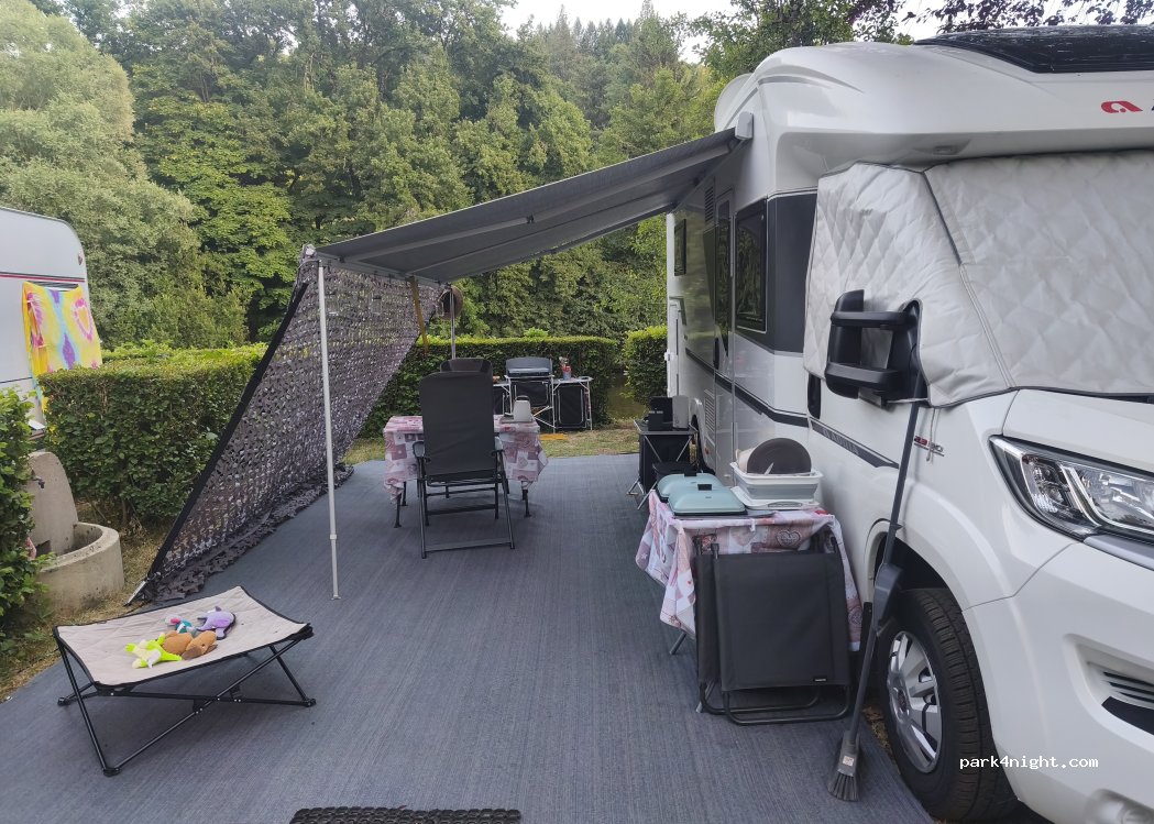 Camping tranquille avec des emplacements bien ombragés. Les allées sont étroites et il n'est pas toujours facile de manœuvrer avec un grand véhicule. Village à pieds et Intermarché de l'autre côté du pont. Base de canoë au village.