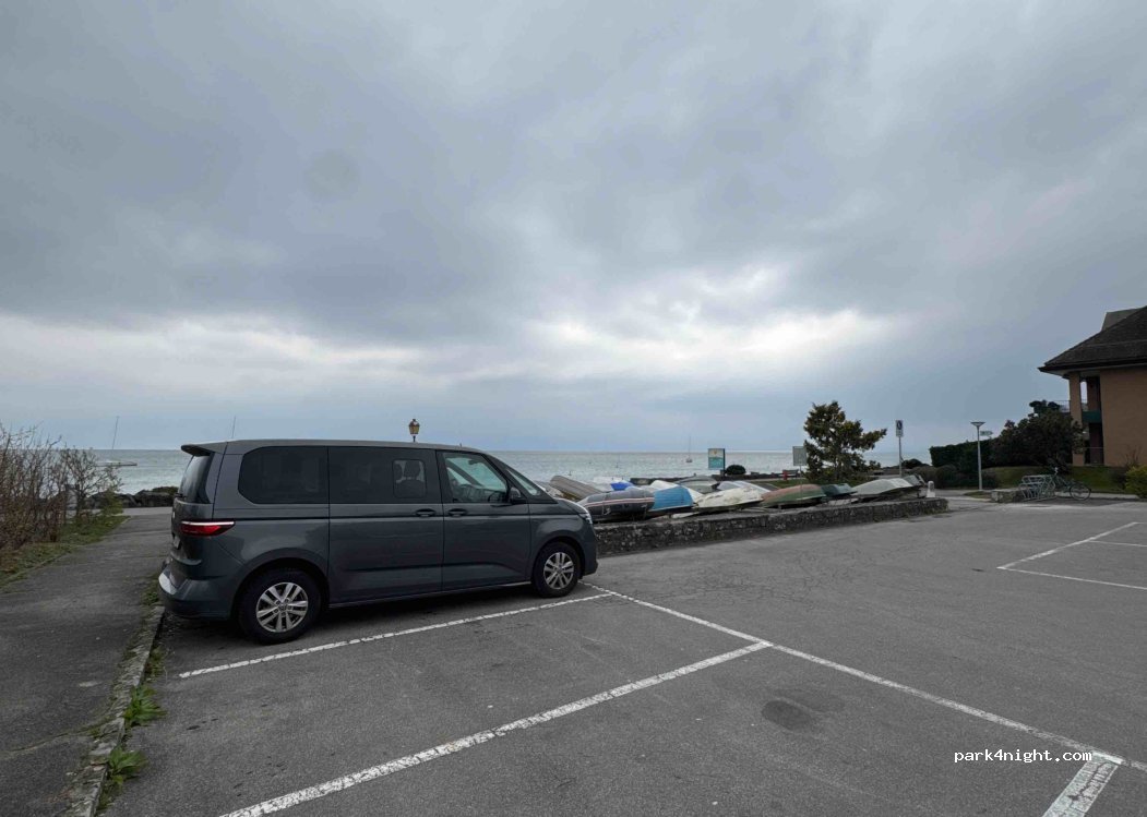 Très bon spot mais attention car nous avons eu une amende de 130 euros hier en journée car nous dépassions en longueur sur le trottoir (camping-car d´environ 6,50m) et qu´il faut laisser un passage d´au moins 1,50m aux piétons. Donc plutôt destiné aux petits gabarits. Et uniquement en journée. Aucun stationnement de nuit n´est autorisé sur toute la ville de Morges.