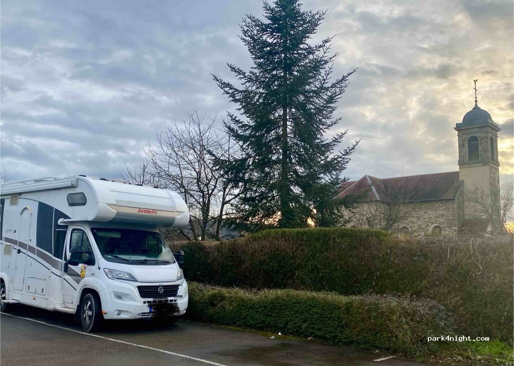 Un grand merci à ce petit bourg pour ce stationnement hyper tranquille. Les 2 places sont le long de la haie, le reste est plutôt pour voitures. Seuls, avons passé une super nuit.