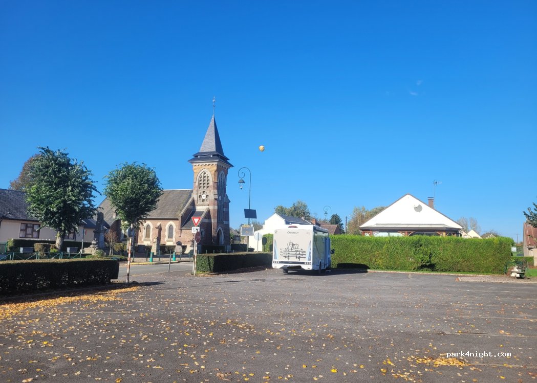 A convenient stop over just off the A16 close to Saint-Quentin. A lovely quiet, well kept village. We are the only van, parked up opposite the Town Hall and church, with the park behind us. We will definitely stopover again. No facilities for water or chemical disposal but the A16 Service's & Aires on A16. Thank you to the Community for this opportunity.