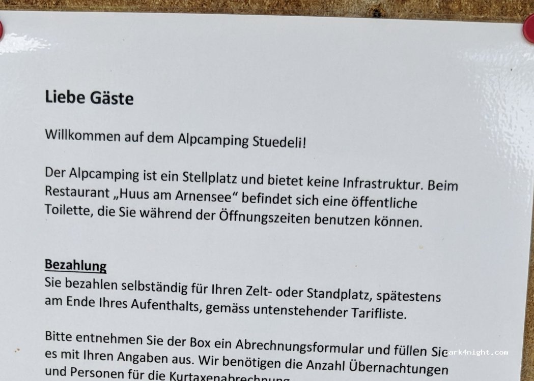 Sehr schöner Platz. 5.- für Strasse, 12.- Van, 15.- Wohnmobil, Zelt 5.-, 4.- p.P