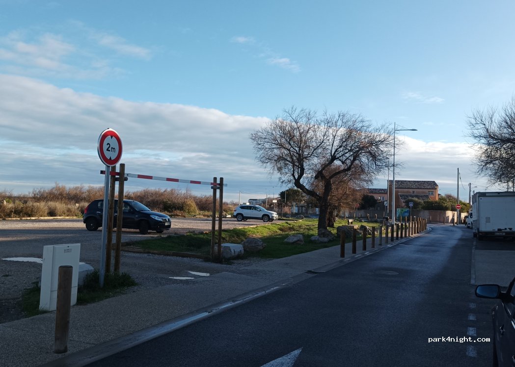 3, 4 emplacements tous camping cars sans interdiction ..c 'est rare !! au bord d'une petite route. Accès plage proche par une petite allée .Restaurants et ravitaillement proche également mais ce qui est top c'est l'arrêt du bus 16 juste a côté qui va a la gare de Frontignan et en prenant ensuite le 11 on arrive au centre ville de Sète ce qui est bien pratique pour visiter sans pb de stationnement