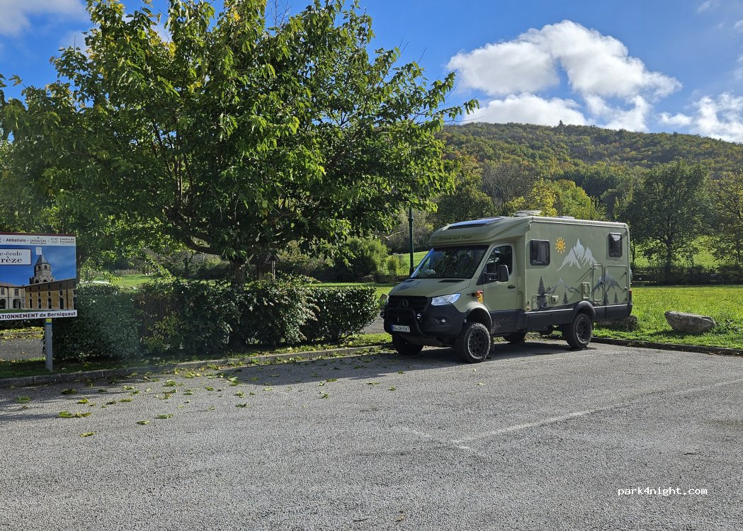 Aire bien placée pour accéder à la commune et à l’abbaye école. Musée du verre à visiter également. Nuit très calme. Zone de vidange pas facile avec un grand intégral. (Préféré m'abstenir) Merci à la commune pour cet endroit.