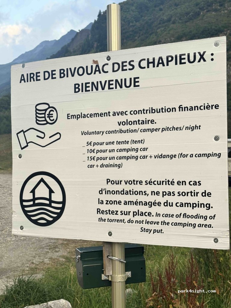 très bel endroit avec environnement de haute montagne magnifique.borne eau et vidage toilette.