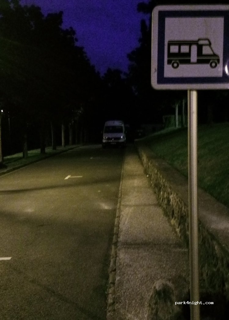 4 leicht schräge normale Parkplätze hintereinander in einer Art Parkbucht ohne jeglichen Service. Zum Besichtigen des hübschen Ortes sehr gut geeignet. Zum Übernachten sind wir weitergefahren.
