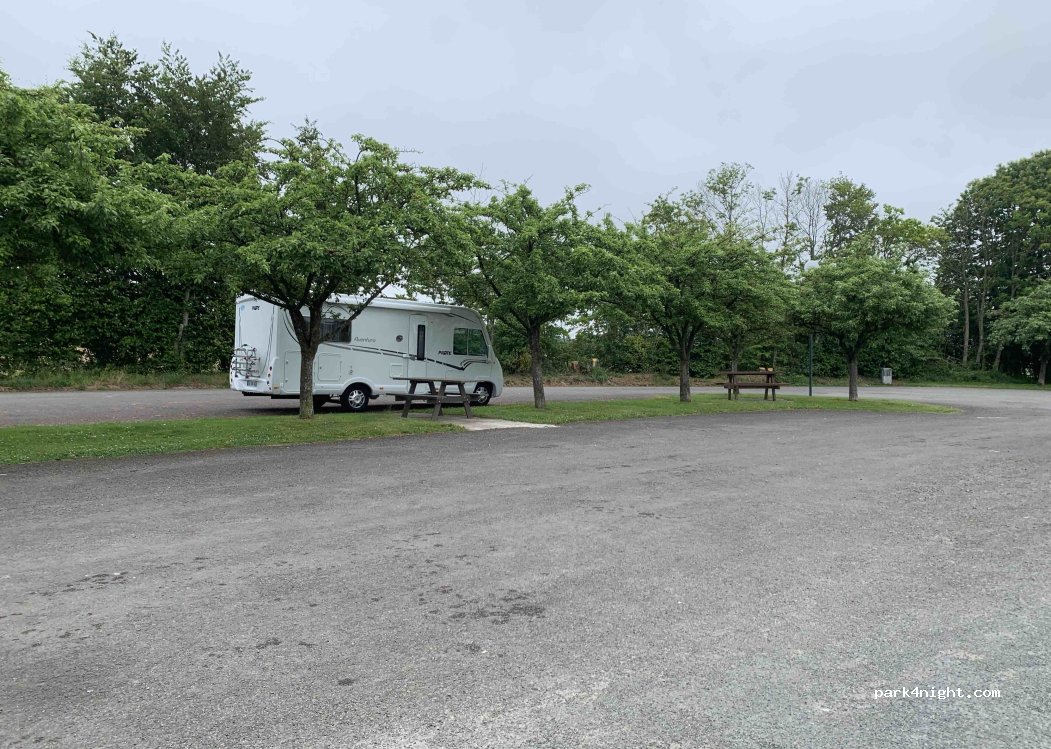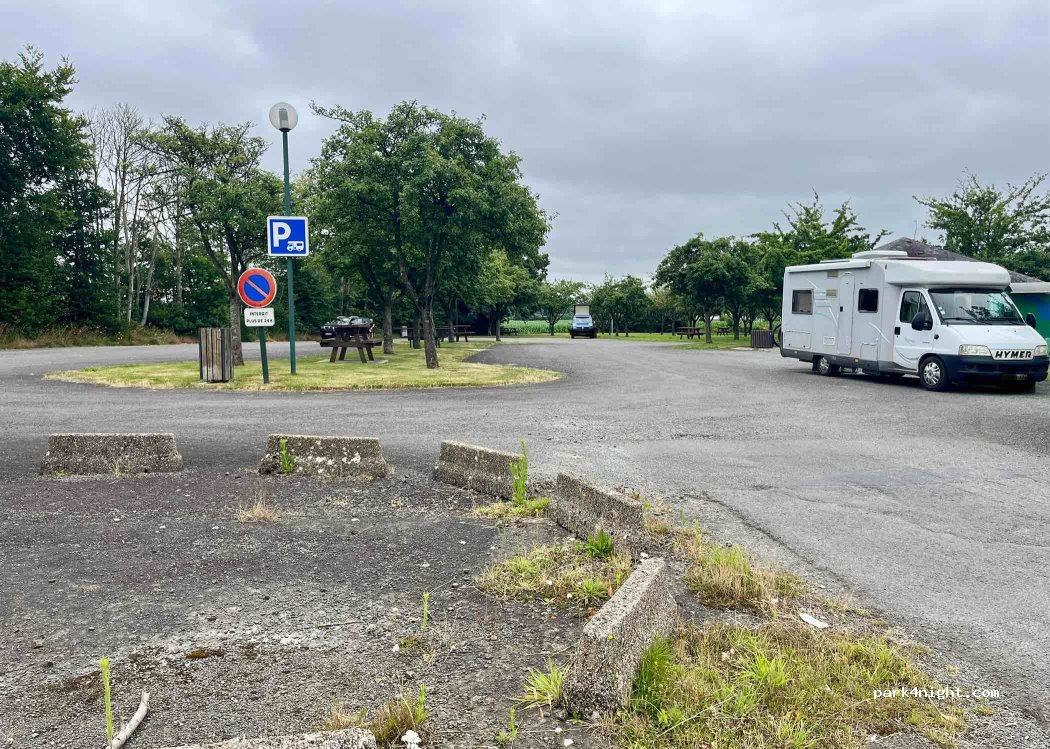 Aire de camping car avec parking, Tout gratuit, sécurisé, beaucoup de table de picnick. Pas de soucis pour dormir. Et en face n'hésitez surtout pas à aller chez Leduc, très bonne charcuterie.