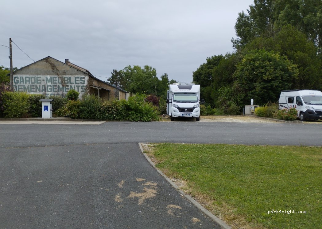 bonjour la municipalité nous propose cette aire en bordure de route mais aucunement dérangeante même la nuit très peu de passage aire avec 4 emplacements stabilisés voir d'autres sur herbe tous services gratuits sauf 2 € pour l'eau potable. vidange eaux grises et noires (WC). beaucoup de municipalités devraient prendre modèle . encore un grand merci à l'équipe de saint Martin de riberac