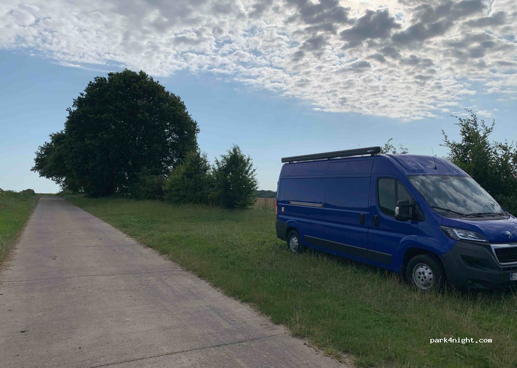 Wunderbarer Platz, um eine oder ein paar Nächte zu stehen. Es ist sehr ruhig und man ist umgeben von grünen Feldern. Wunderbar, auch mit Hund, der kann frei laufen. Eine Straße ist zwar nah, aber man hört nichts, wenn man sich hinter die Büsche stellt. Ich kann meiner Vorrednerin nicht zustimmen. Toller Platz, vielen Dank.