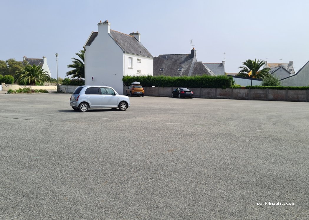 Grand parking dans une impasse qui mène à la plage, places assez longues pour que notre fourgon 5,40m ne dépasse pas du tout en effet. WC fonctionnels. Pas de remarques de la part des habitants des maisons autour, pas de panneau d'interdiction. L'endroit est très calme.