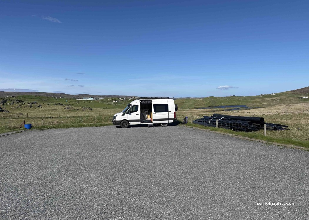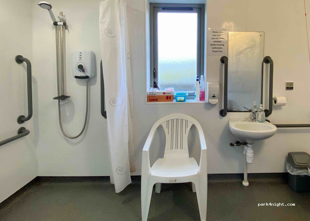 A nice overnight stop at a local community facility. One shower and ample toilets, all of which were very clean. Hookups and water if required. Chocks needed as steep slope. Beautiful views and a very peaceful night. Good to contribute to a local community, £18 excl EHU.