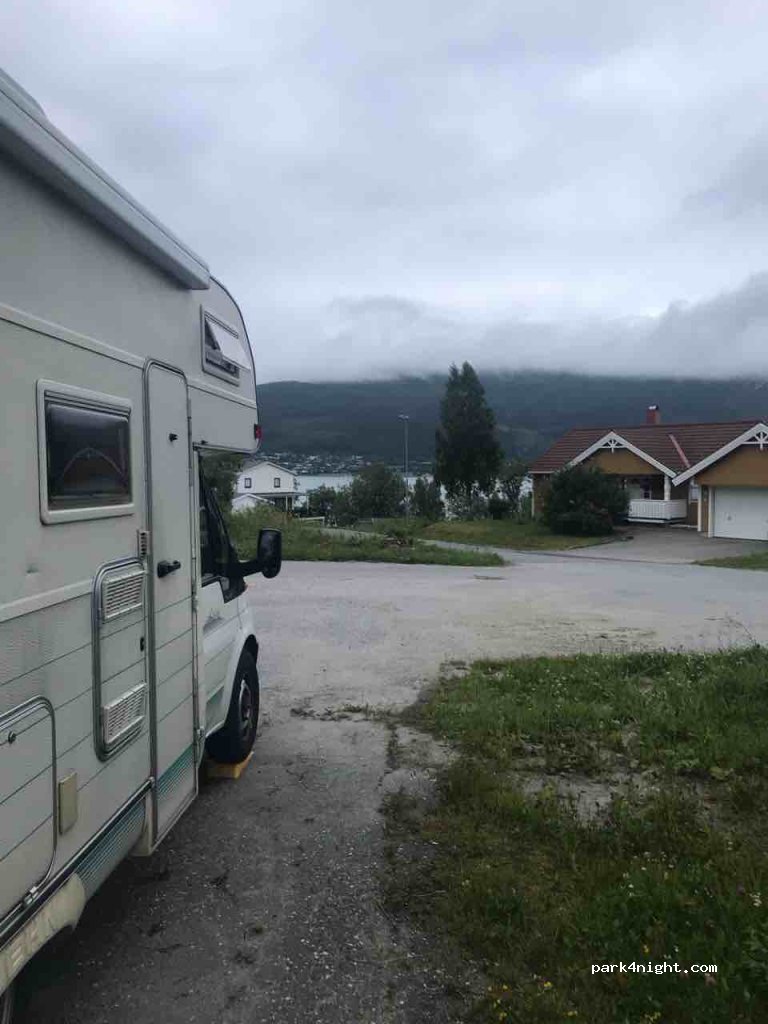 Quiet, free parking space for one night in the residential area of Alteren (near Mo i Rana), off the E 12 at Nordrana Fjord. Bituminised underground, approx. 7 places, no water, no toilets!