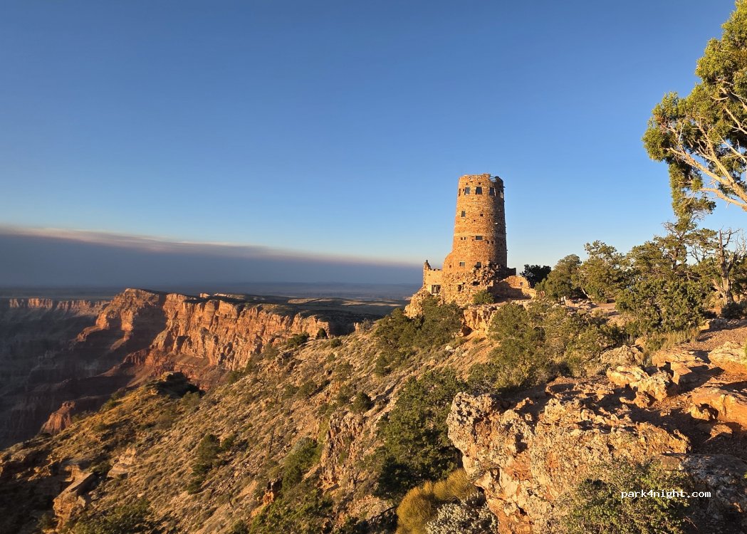 Parking de Désert View, très pratique pour admirer le coucher du soleil sur le Grand Canyon. Nuit calme, sans problème. Quelques autres camping-cars. Toilettes à proximité.