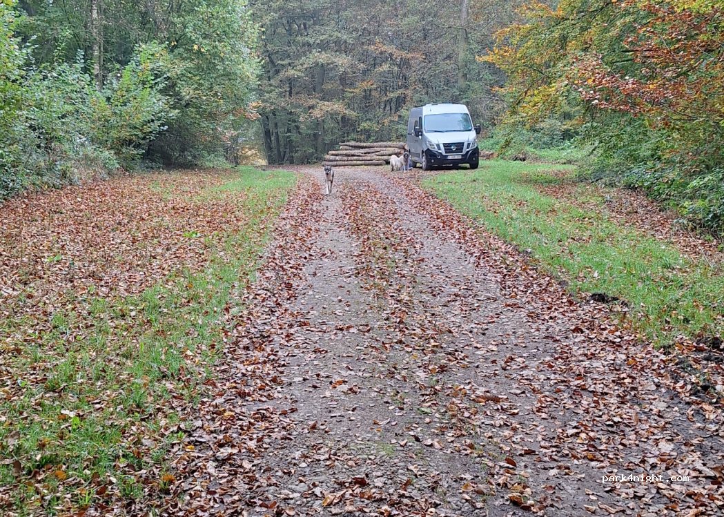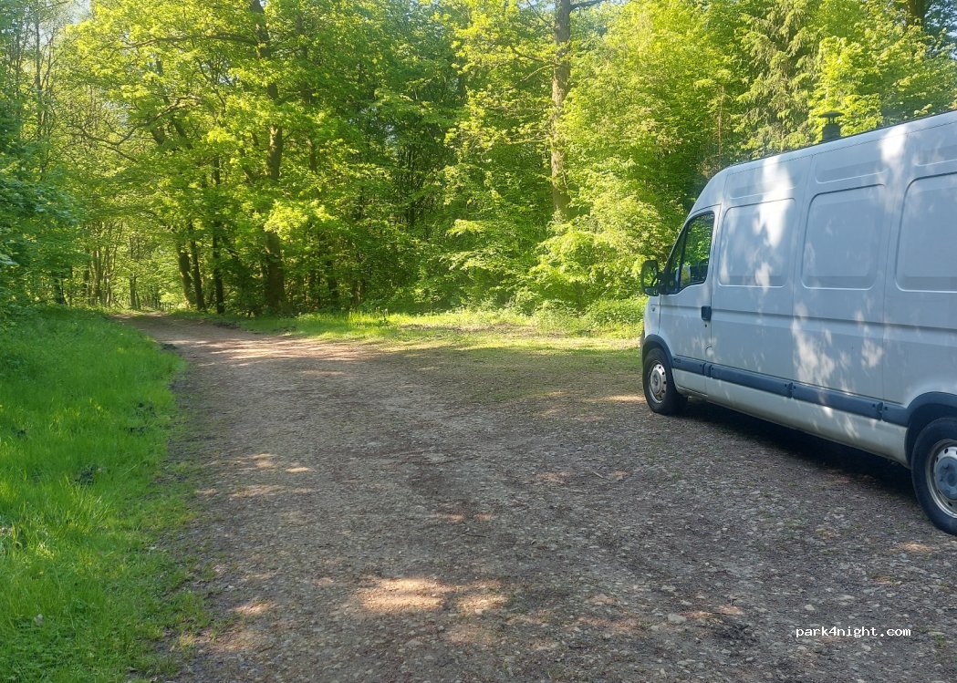 Entrance to a communal forest belonging to Florentville. Sign indicating the abandonment of motor vehicles, 4 cars can park. Peaceful place! Wild camping prohibited in the woods!