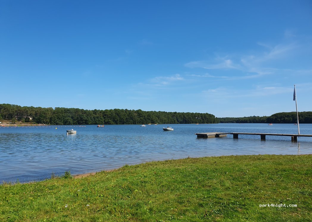 Camping proche de la base nautique du lac de Tremelin, calme, ombragé et sanitaires propres. Accès direct à la plage du lac avec location possible de bateaux électriques, jeux pour enfants, restaurant... Idéal pour visiter Brocéliande.