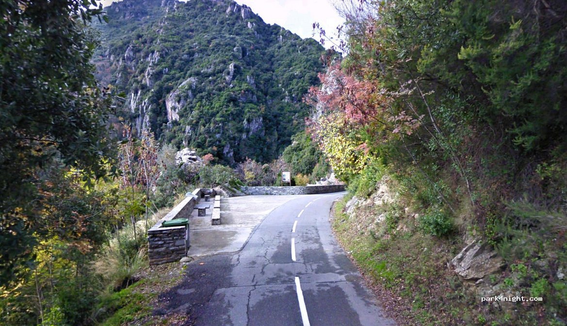 Petit parking calme à deux pas de la cascade de L'UCELLULINE. Attention! Pour Fourgon seulement, la route d'accès est assez étroite et tunnels en venant de Santa Maria Poggio. Baignade pour les plus téméraire. Cascade éclairée la nuit et vue magnifique!