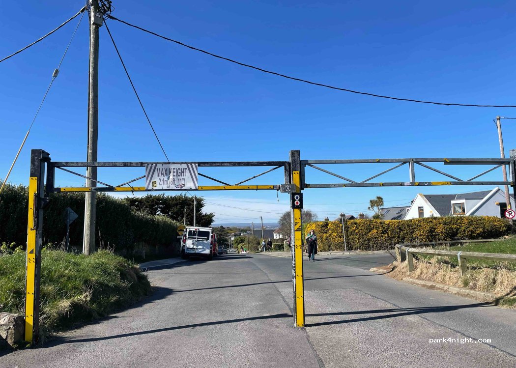 Joli parking goudronné départ de quelques randonnées. Vue panoramique sur la mer. Pas mal fréquenté en journée et le soir tard si la vue sur Dublin le permet (un peu bruyant dans ce cas ), pas mal de vent. Un bel endroit. Barre à 2.1m soit 7 fts.