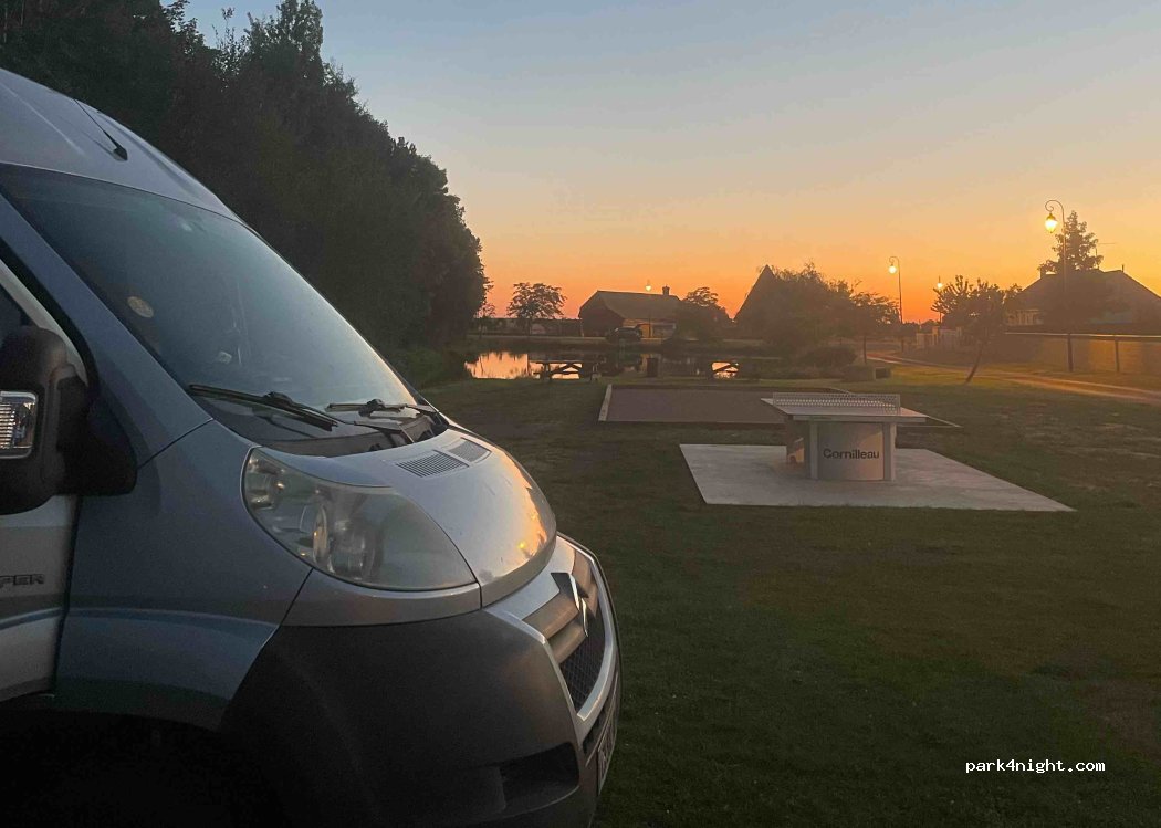 A l'entrée du petit village, aire de pique nique près d'une mare. Très calme, idéal pour passer la nuit. Beaucoup d'espace.