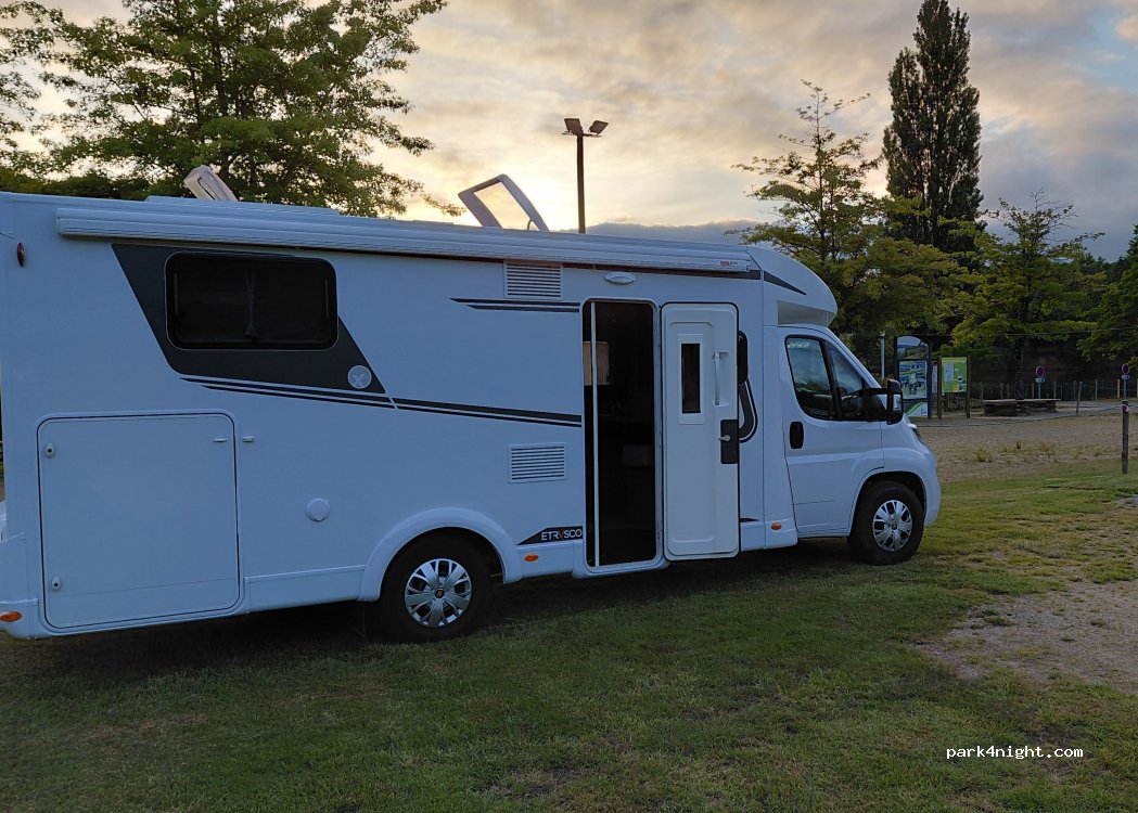 Sur aire de loisir beaucoup de place pour stationner nuit au calme nous étions seul. Je recommande