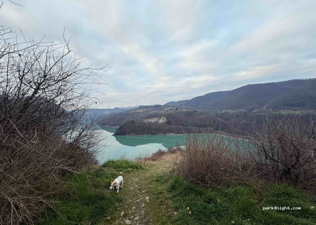 Nuit calme avec une vue superbe sur le lac le camping-car passe sans difficulté. Balade en contre bas pour jeter un coup d'œil au barrage.
