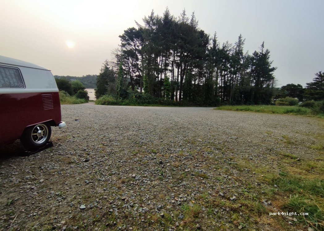 chouette coin (parking en terre battue et cailloux, entouré de hauts arbres) pour un van. Grand calme pour la nuit. Un peu de monde vient s y garer dès avant 8h (kayaks, randonneurs...). nous y étions seuls un 14 août, alors q tous les campings et parkings c.c des alentours étaient complets.