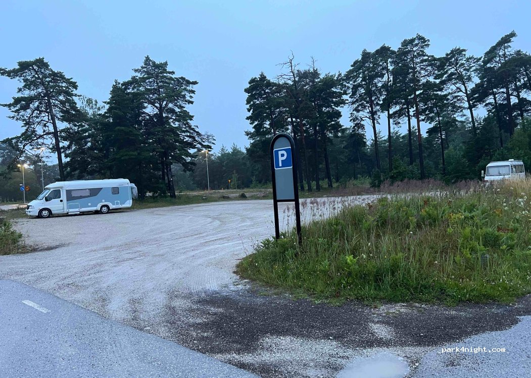 ruhiger platz ausserhalb von visby, 7 min von der fähre entfernt.direkt am wald, viele waldwege, ideal mit hund, am morgen einige jogger. wir standen zu zweit hier. sehr zu empfehlen !