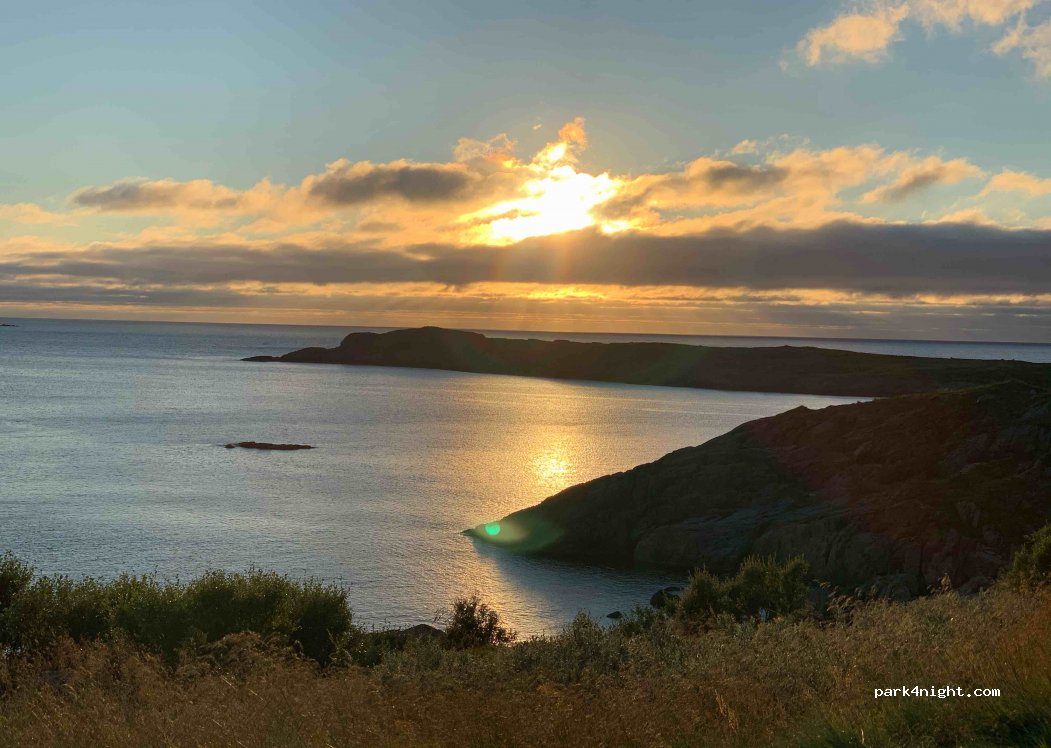 Parfait ! Au bord de la route mais dans un petit renfoncement herbeux. A 3,5 km du village, peut être l’emplacement suivant celui indiqué. Très peu de passage et idéal pour voir le soleil de minuit !