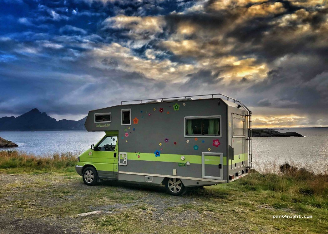 Just a roadside parking for max two campers but a brilliant view. 3km outside of Nyksund along the gravel road. We stayed for one night. No traffic at night and in the evening it‘s one car every 30 min. Calm.