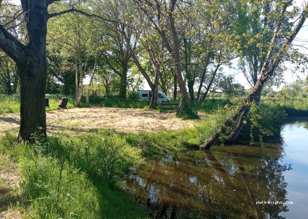 Joli petit endroit près d'un étang. Il faut arriver de bonne heure car nous avons dormi à 4 véhicules (le maximum garable) et beaucoup d'autres ont dû chercher un autre lieu.