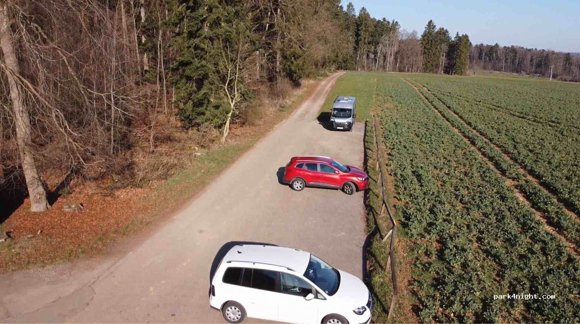 Kleiner Stellplatz (nicht für große Mobile geeignet) in der Nacht und am Morgen ruhig, ansonsten wird der Parkplatz recht häufig von Spaziergängern, Hundebesitzern und Joggern genutzt. Für eine Nacht gut geeignet, es können schöne Waldspaziergänge gemacht werden.