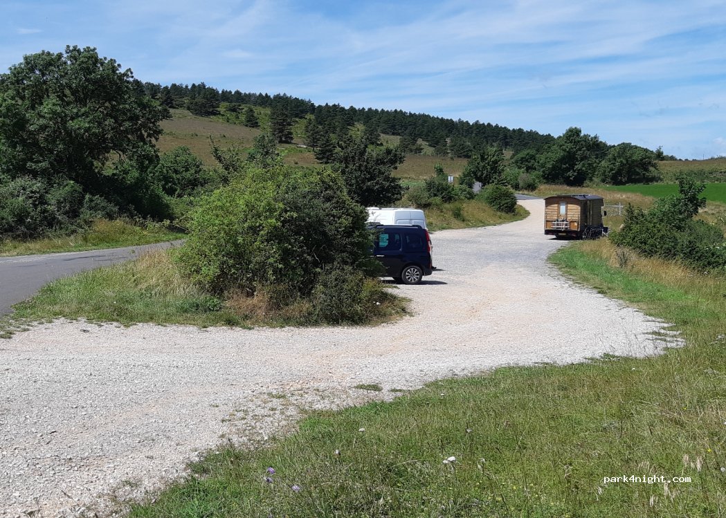 Voilà un petit coin comme je les aime ... seul au monde et dans un environnement magnifique au dessus des gorges. Petit parking assez plat et au calme. Pas de déballage évidemment / ni cale car camping interdit. (Juillet)