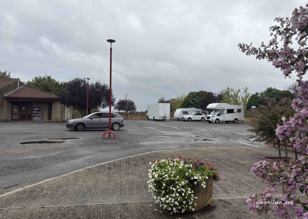 Spot qui dépanne pour une nuit. Assez bruyant (route, crèches, cloche de l'église). Les seules prises disponibles sont pour les voitures électriques, les autre appartiennent à la mairie et ne sont pas disponibles. Point d'eau au cimetière en face.