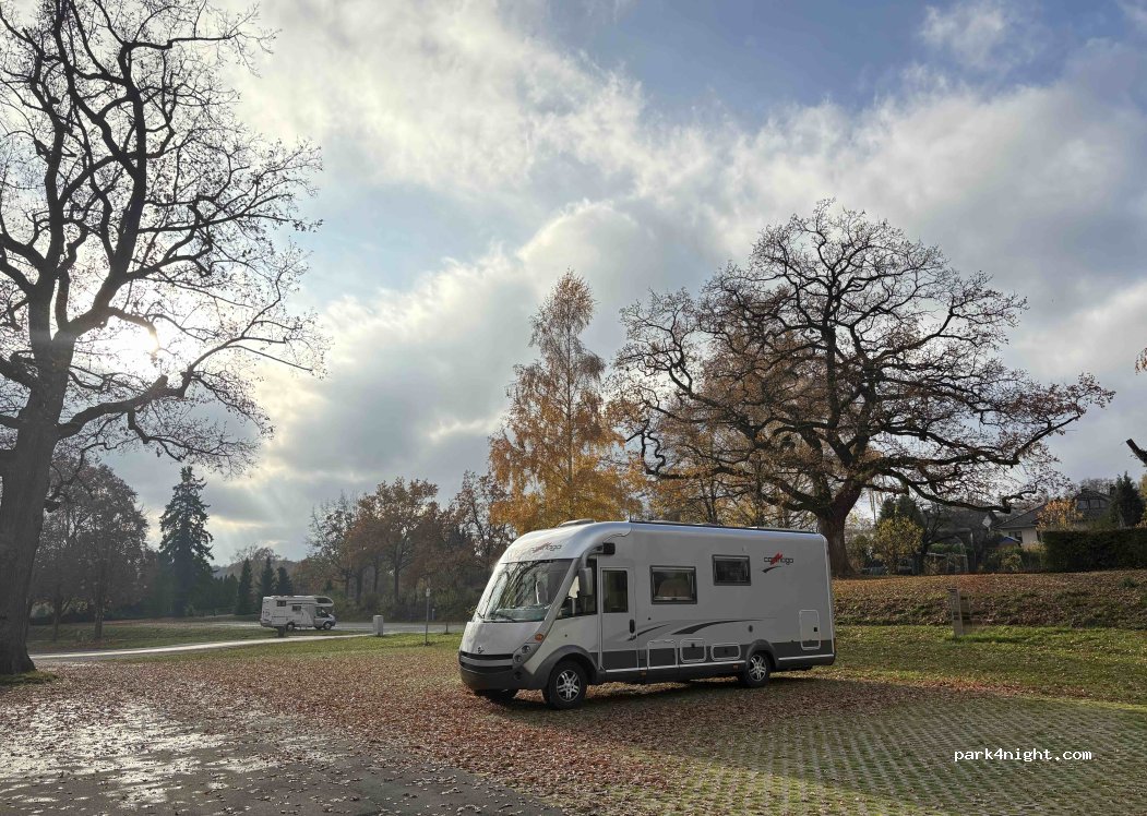 Free parking with some electrical connections on coin-operated pillars. VE in the parking lot. Since May 2019, 8 additional premium seats in the immediate vicinity, quieter and all with electrical connections. Closed at the end of May/beginning of June during the cattle market folk festival, if it takes place. the city offers an alternative option during the folk festival at the school center without supplies