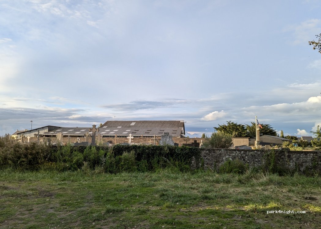 petit parking très calme à côté du cimetière. WC à 100m. merci de respecter ce lieu afin que nous puissions continuer de s y arrêter. De nombreux camping car ce sont arrêtes dans le week-end. nous nous avons passé 2 nuits ici top pour visiter les salants, La Baule et Pouliguen en vélo