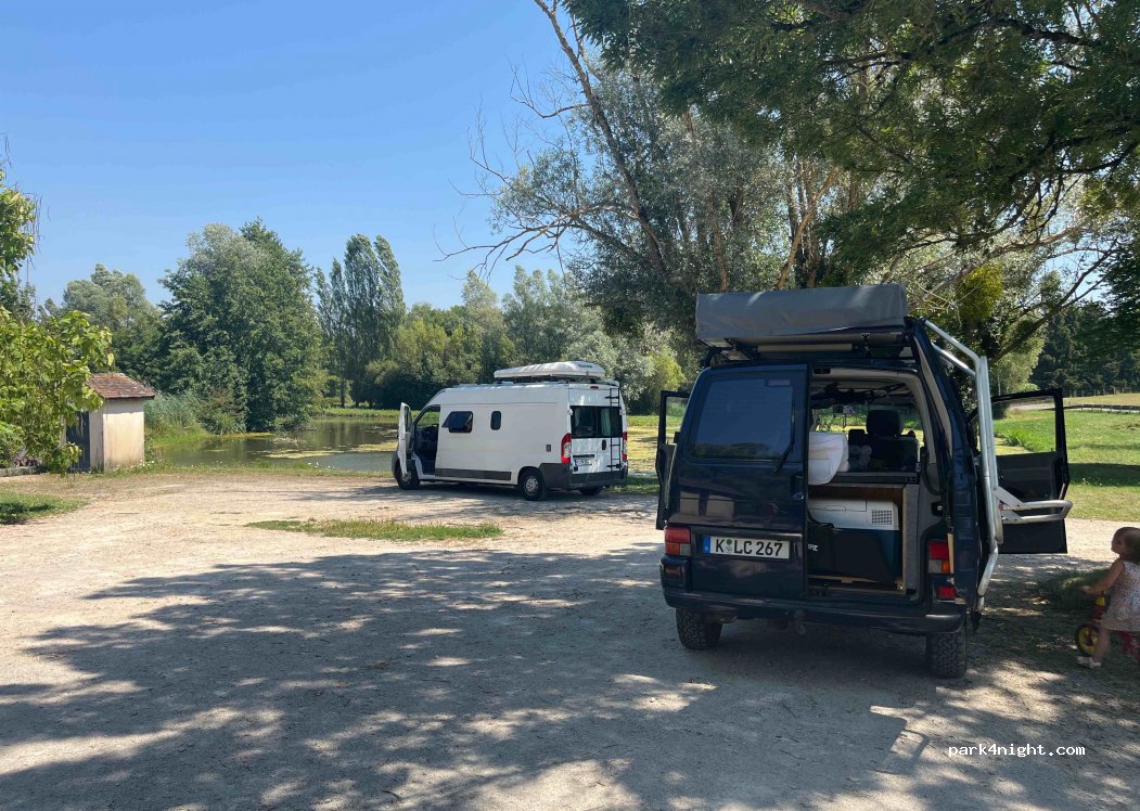 Super mignon et calme pour passer la nuit au bord d’un étang. Les toilettes sont à disposition et elles sont propres.